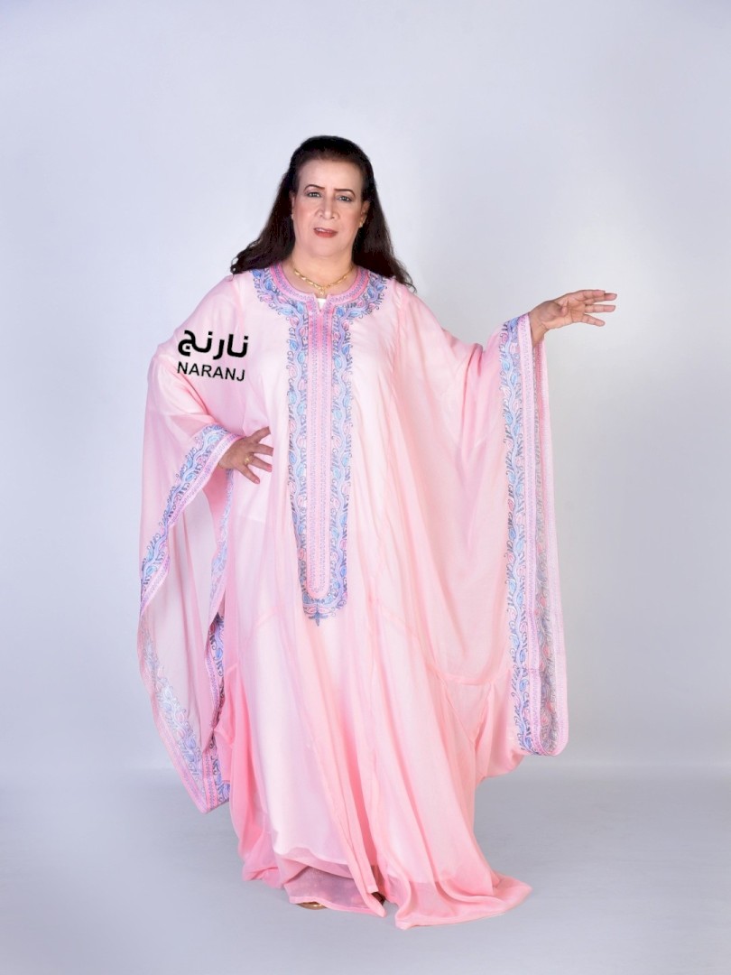 صناعة بحرينية ، المصممة حصة بودهيش - قطن مشجر - الياقة مزينة بشريط ماروني مشكوك بالفلوك الذهبي - مناسب للجلسات البسيطة والخفيفة